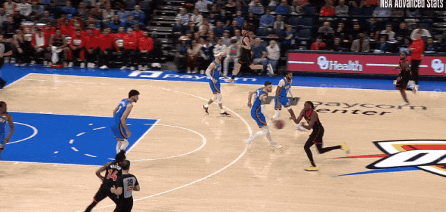 雷霆讓切特+哈騰首發,亞歷山大7分鐘內沒得分,兩個失誤。其中一個失誤:哈騰高位擋,切特底角站;亞歷山大突破,試圖喂切特,被斷。
