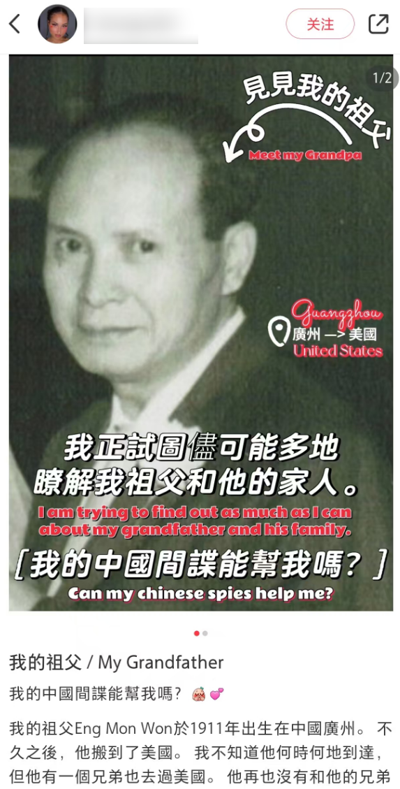 不光是分享,不少海外華人更希望通過小紅書尋找自己的親系。