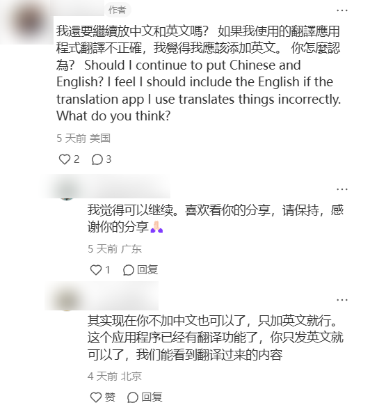 一部分外國老鐵回到了 Tiktok,也有一部分“ 間諜朋友 ”愛上了刷小紅書,樂此不疲地在翻譯軟件和小紅書之間反覆橫跳。