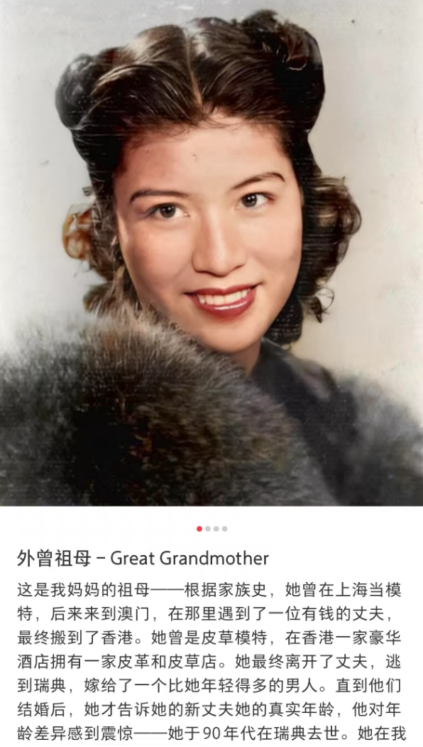 像是下面這位的外曾祖母,就從上海、澳門,一路來到了瑞典,並度過餘生。