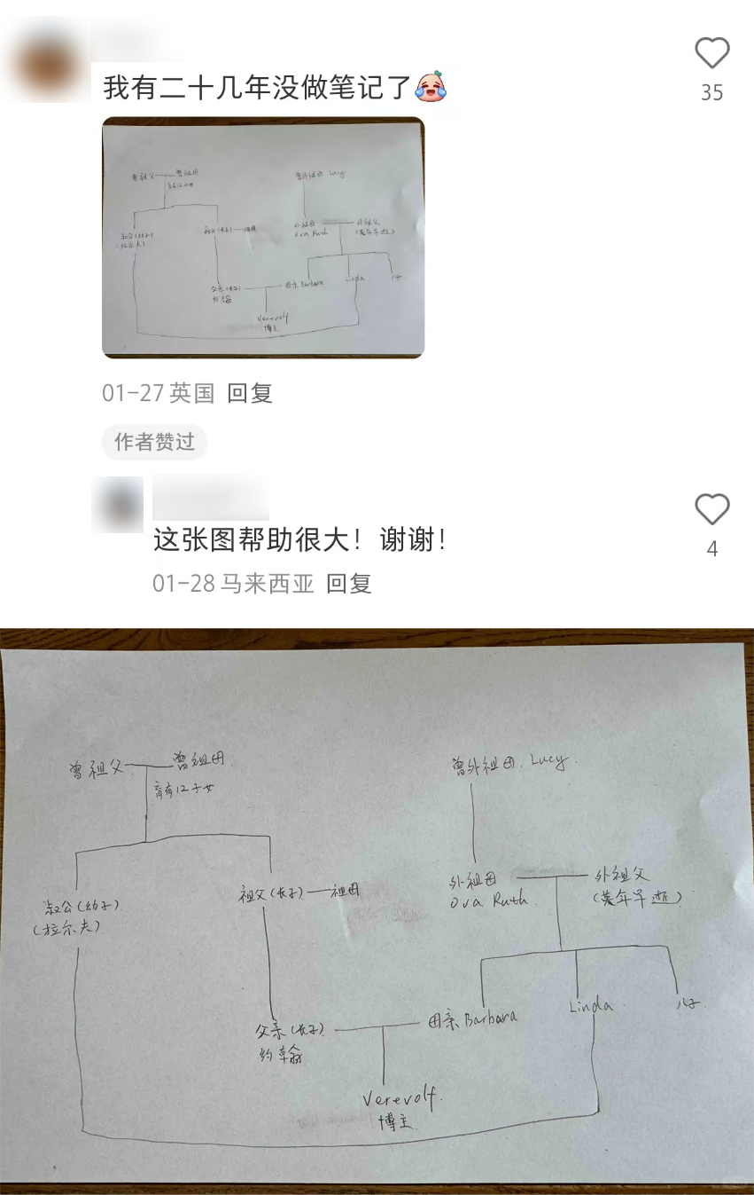 因為不僅科普頭頭是道,很多海外原博主自己都不清楚的祖輩經歷,也全被網友幫忙挖了出來。