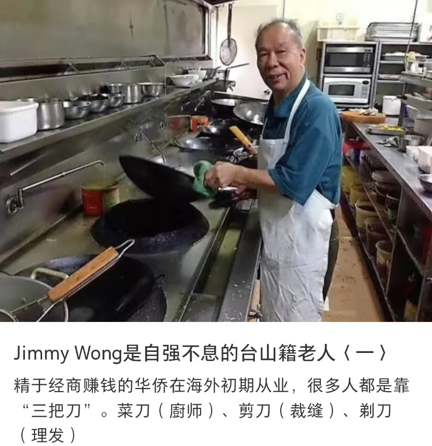 這些最早出走美國的廣東華人,也並非全奔着挖金礦去的,像是早年間廣東人去國外經商,主要依靠三把刀:菜刀、剃頭刀、裁縫刀。