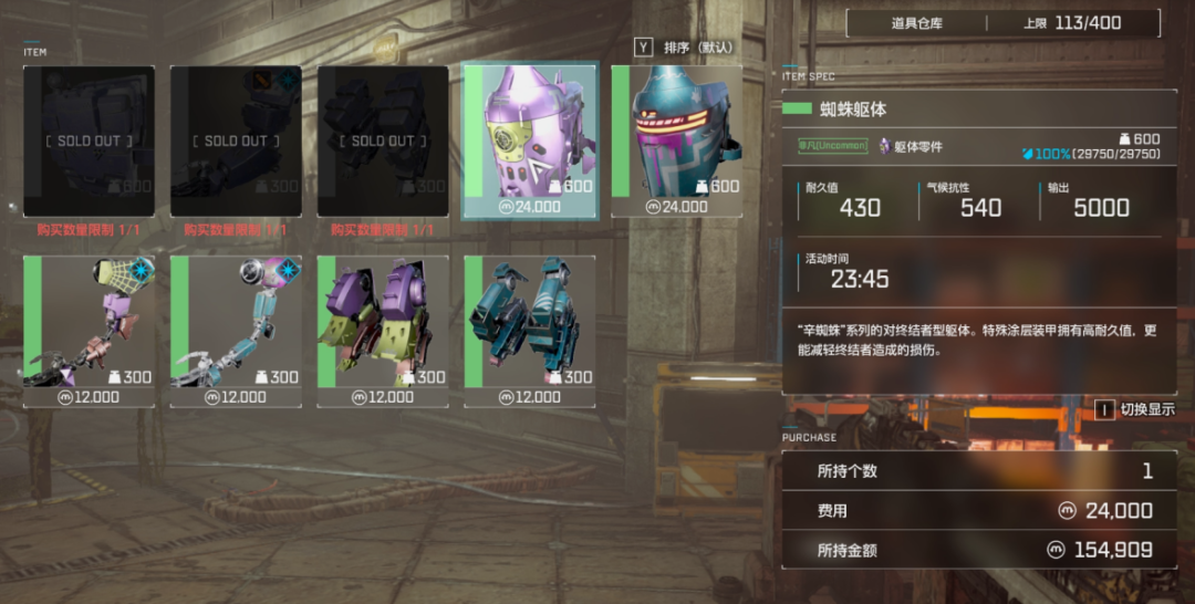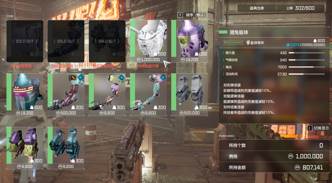 正式服上線後的首個版本,一套普通綠色機體需要4.8萬,我要跑兩三局才能賺到一套日常出勤“半裝”的錢——在其他撤離射擊遊戲中往往是反過來的,撤出一局賺到兩三套日用裝備的錢才相對合理。