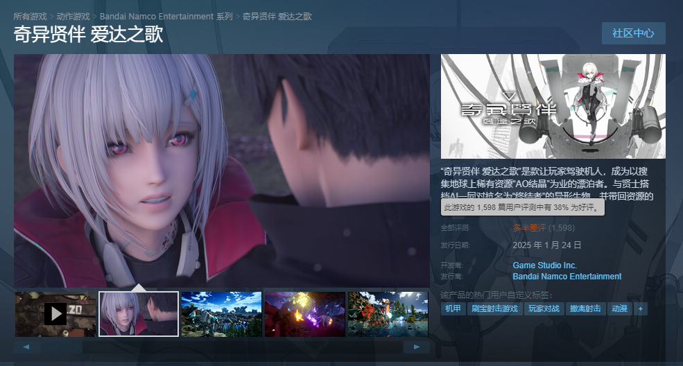 發售半個月後,萬代南夢宮的第三人稱撤離射擊遊戲《奇異賢伴:愛達之歌》在Steam收穫了六成差評,在線人數峯值2千出頭,仍在穩步下降。
