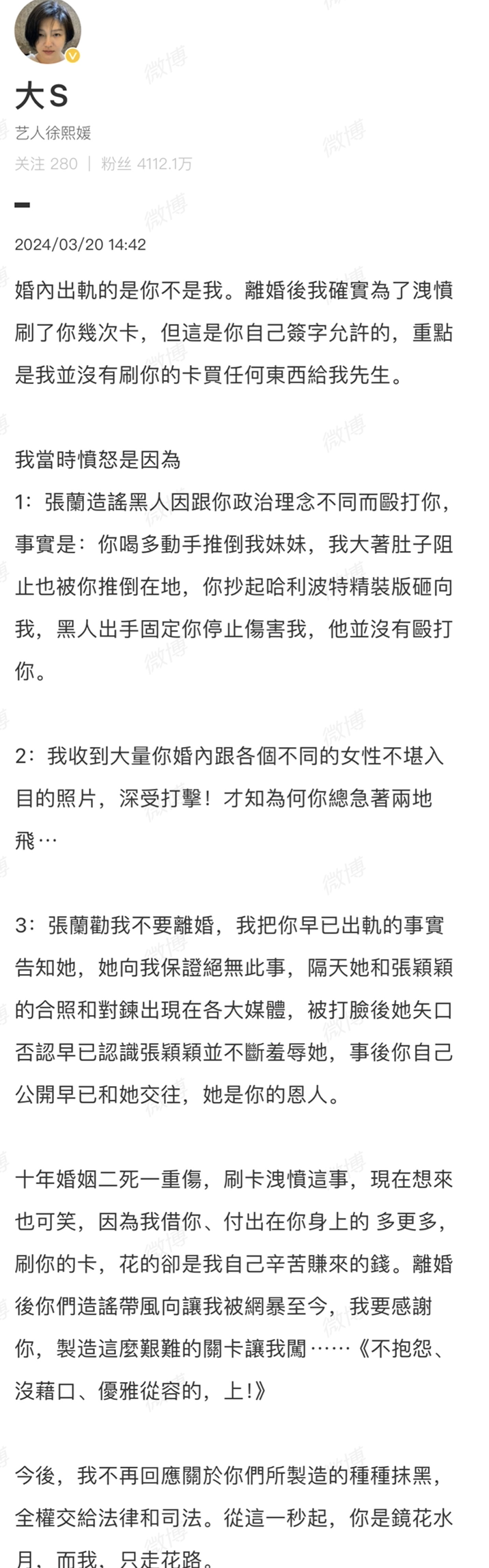 他並沒有很強的社會功能,不是一個在關鍵時刻能夠為大S扛起一切的人。