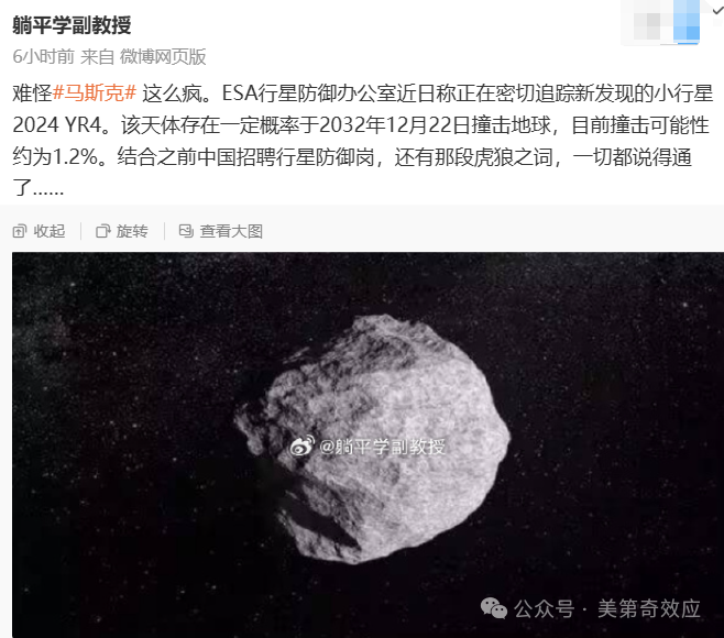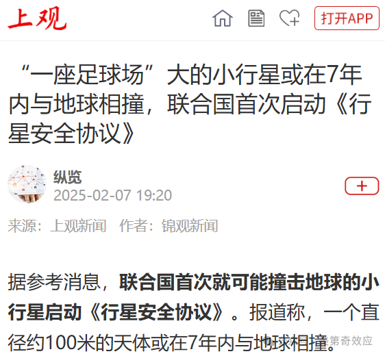 雖然撞擊概率大約1.2%,但誰知道這是不是安撫民意放出的樂觀數字?反正聯合國的行星安全協議啓動了,東方也突然提出,要進行小行星防禦計劃,甚至國防科工局都開始招聘小行星防禦崗。