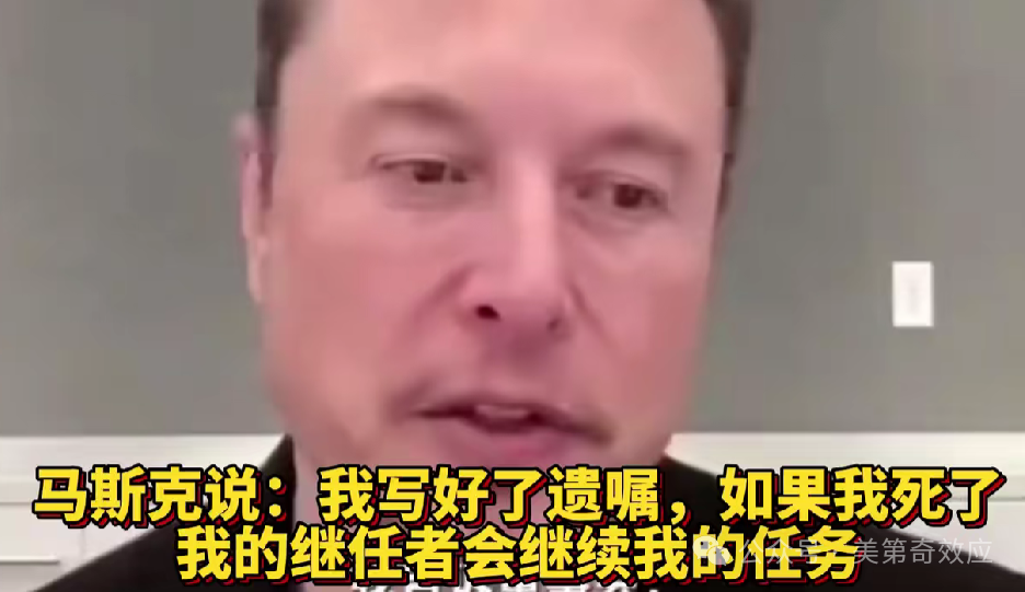 馬斯克表情凝重的説,他已做好了最壞的打算,如果自己出了意外,他的事業將交由一名已選好的繼承人接手,但為了保護這個人的安全,目前只有自己和董事會知道此人的身份。