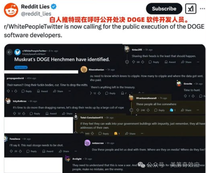 不但賬搞不清楚,查賬的人去向也經常搞不清楚,新總統這是把老馬往死路上逼呀。畢竟馬千歲的DOGE效率部六名成員已經全部被開盒,到處都在呼籲,“公開處決”他們,勒死、槍殺、投毒……這種情況下,出幾個精神病亂開車亂開槍,應該不足為奇吧。