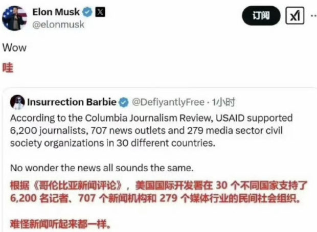 在馬廠公“大清洗”之後,國際開發署的原本10000餘名員工將僅保留294名,有97%的人將被解僱,上百億甚至千億資金被凍結……馬廠公這幾天的具體行動如下:關閉美國國際開發署,1.2萬員工失業;FBI裁員5000人;CIA裁員4000人,並給另外22000人買斷8個月的工資,工資可以取現金,也可以繼續在CIA工作8個月;目前還準備對教育部和國防部開刀……但遭到了抵制和對抗。你明顯可以看到,這幾天整個全球互聯網都乾淨了很多,就連BBC都開始正經報道“東大製造2025已經成功”,甚至都忘了加祖傳陰間濾鏡……在遙遠地方的某些媒體,也開始縮編、裁員、撤銷各種網站雜誌新媒體分支機構,這一下,“媒體的寒冬”真的來了。