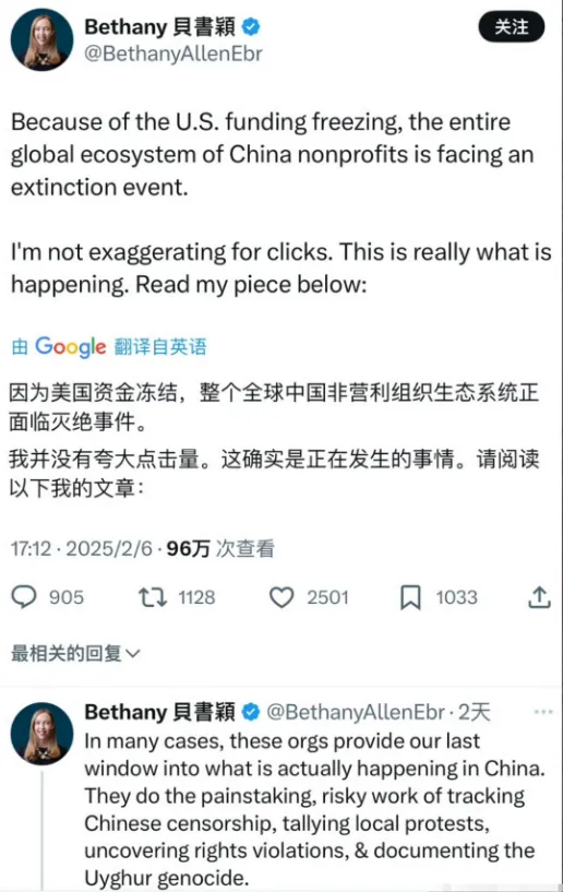 比如説全球範圍內針對中國的“非盈利”組織,都是從USAID拿的錢,一旦不給錢了就立刻“瀕臨滅絕”。