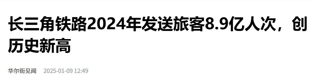 長三角是全國所有地區裏使用高鐵人次最密集的地方,2024年發送了8.9億的人次