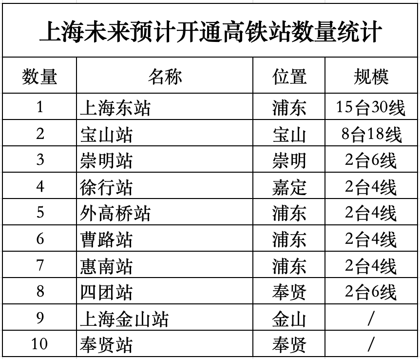 截至目前,上海一共擁有10個高鐵站,大站4個,小站6個