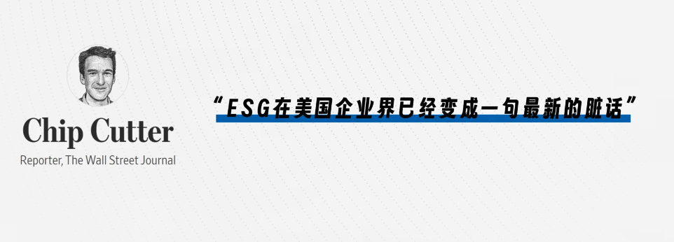 2024 年初,華爾街日報記者奇普卡特( Chip Cutter )直接説:“ ESG 在美國企業界已經變成一句最新的髒話 ”