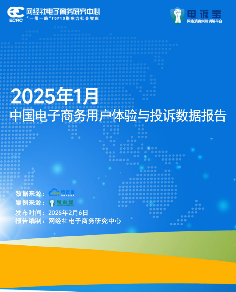 在此背景下,2025年2月6日,依據網絡消費糾紛調解平台“電訴寶”2025年1月受理的全國73家互聯網消費平台糾紛大量案例數據,“一帶一路”TOP10影響力社會智庫網經社電子商務研究中心發佈了《2025年1月中國電子商務用户體驗與投訴數據報告》。