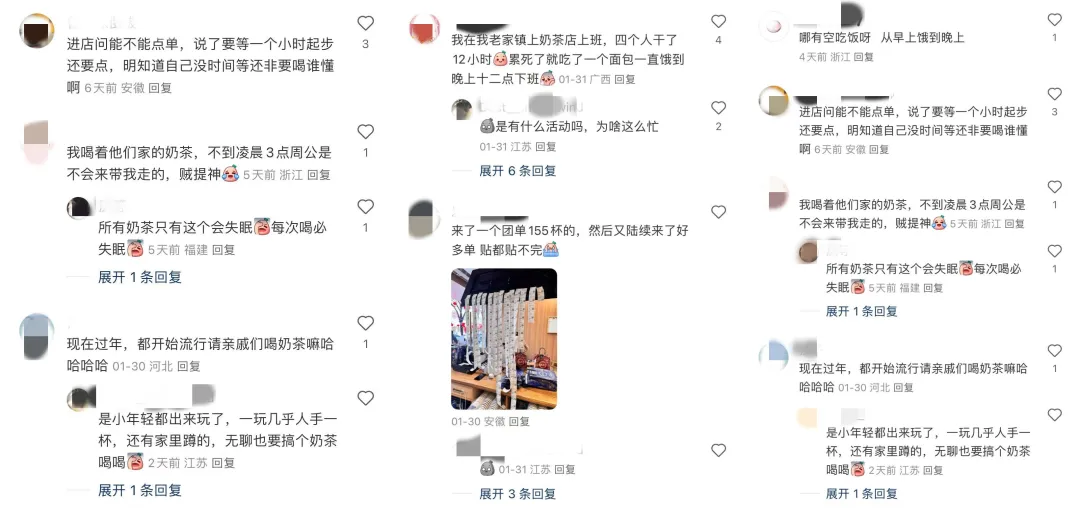 江蘇一家霸王茶姬的店員也吐槽,“大單三十杯起步,來不及喘口氣,別人在過年,我在‘過命’”。
