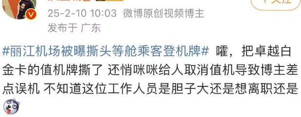 離譜!麗江機場工作人員撕頭等艙乘客登機牌?這次踢到鋼板了…_風聞