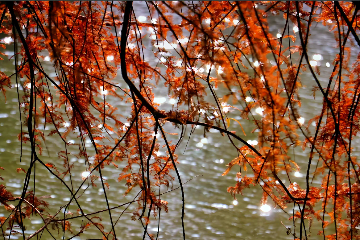 靠近岸邊的水面結了一層薄冰,倒映着紅杉挺拔的身影。幾隻水鳥在冰面上輕盈地滑行,留下一串細碎的足跡。我站在棧道上,看着自己的呼吸在半空中凝結成白霧,恍惚間好像看到了時間的形狀。這片紅杉林,在寒冬中依然保持着優雅的姿態,它們不需要繁花的點綴,也不需要綠葉的襯托,僅憑那份從容與堅韌,就足以讓人心生敬意。