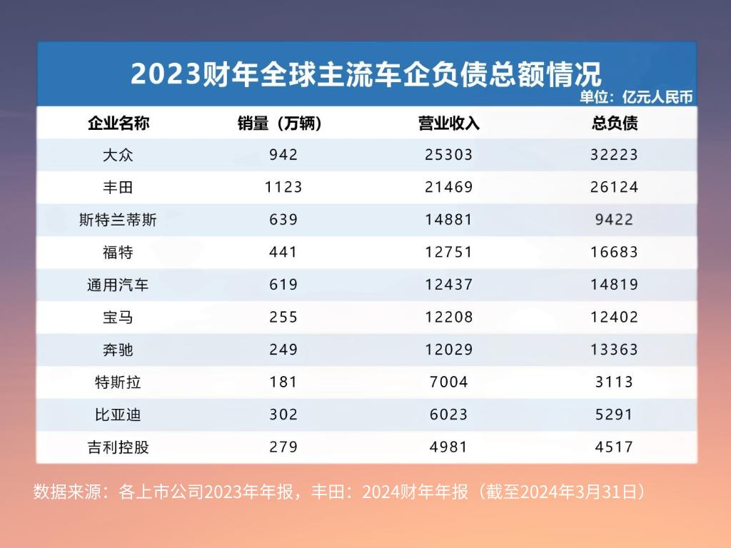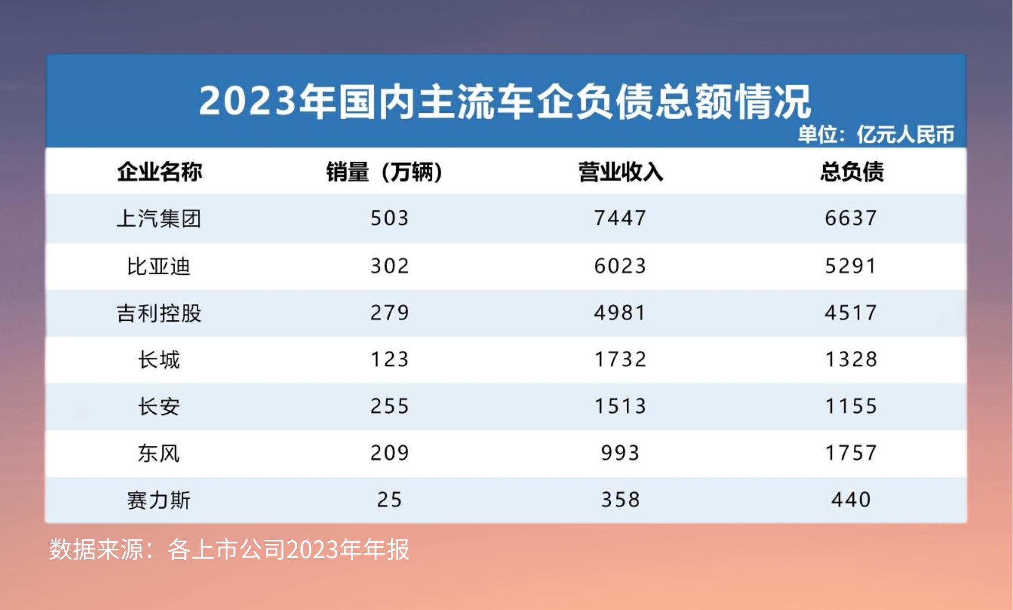 相比之下,國內車企的總負債相對較低:2023年上汽集團營收7447億,總負債6637億;比亞迪營收6023億元,總負債為5291億;吉利控股營收4981億,總負債為4517億元。