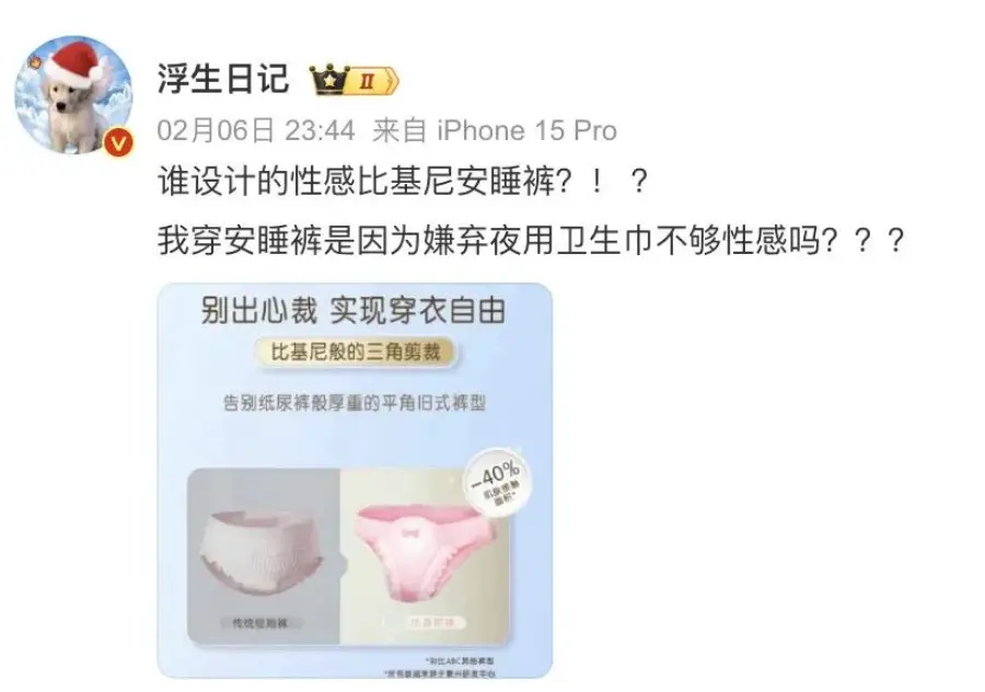 網友吐槽:“我穿安睡褲是因為嫌棄夜用衞生巾不夠性感嗎?”