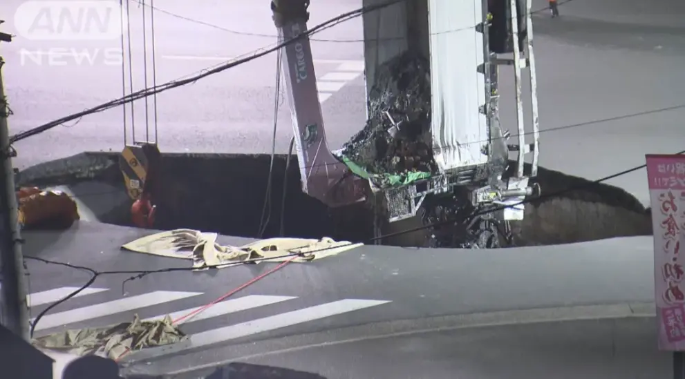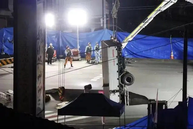 當天上午,八潮市的一個交叉路口毫無預警地突發變故。原本平坦的道路猛然塌陷,一個約 15 米的 “天坑” 瞬間出現。一輛白色卡車躲避不及,直直衝進了大坑之中,車上 74 歲的男性司機被困,生死未知。