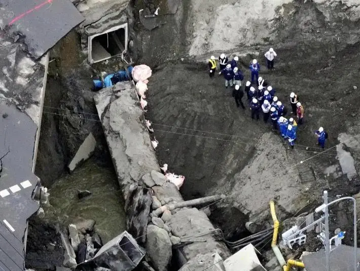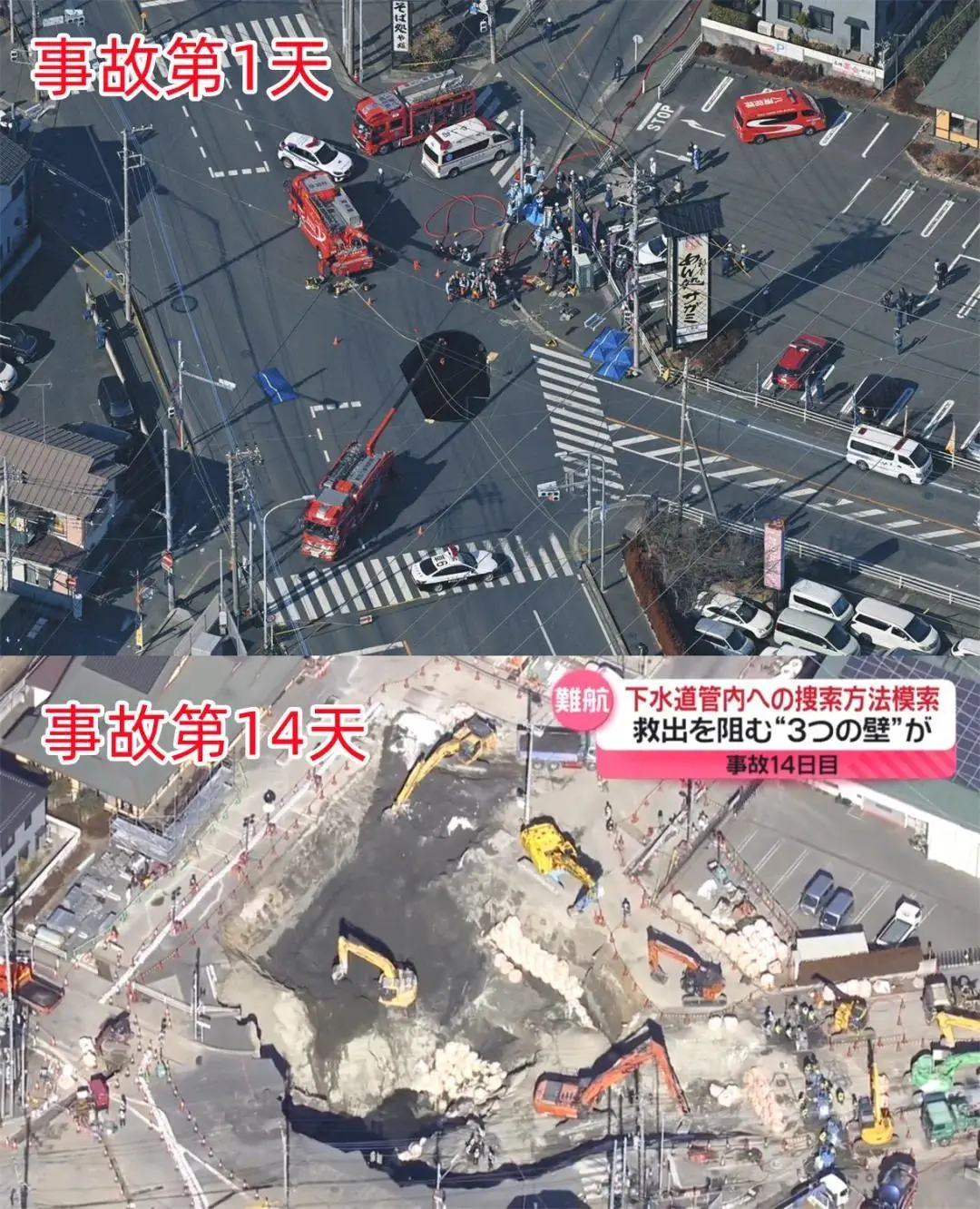 日本道路塌陷事故,救援14天坑越挖越大_風聞