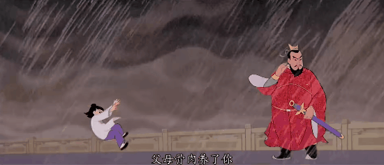 哪吒為了拯救陳塘關的百姓,也為了反抗李靖,口中含發,眼神堅毅,説出那句經典台詞“爹爹,你的骨肉還給你,我不連累你”,拔劍自刎,“剔骨還父”。