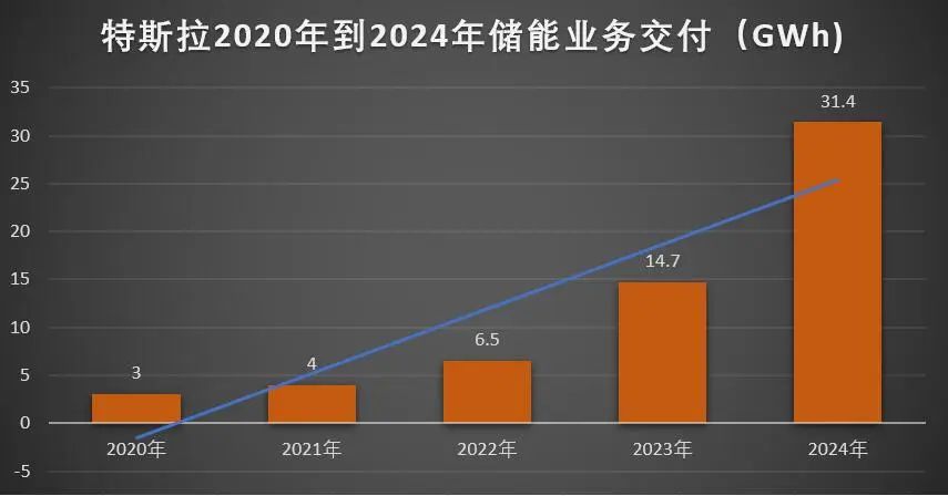 2024年特斯拉裝機量為31.4 GWh(吉瓦時),同比增長114%,凸顯了其在儲能領域的主導地位以及對大規模儲能電池解決方案的需求在快速增長。根據其公佈的財務數據顯示,2024年特斯拉儲能業務收入達到100.86億美元,同比增長67%,這一增長遠遠高於公司整體營收的增長率,表明儲能業務成為特斯拉業績的重要增長驅動力。