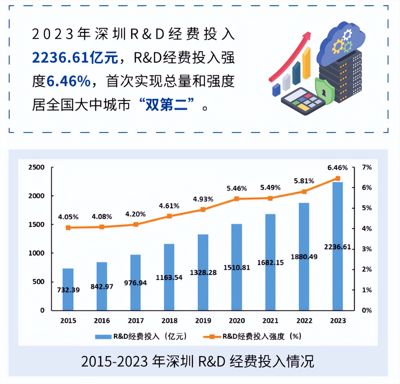 最新統計顯示,深圳企業R&D經費投入達到了2085.78億元,佔全社會研發投入的93.3%,企業研發投入總量居全國城市第一。