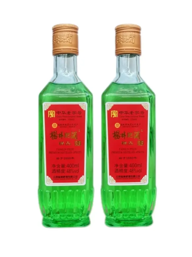 接下來這款酒,雖然不比前兩位老大哥之烈,但也有接近50度,主要是勝在顏值。**來自雲南的楊林肥酒,長得像風油精的plus版,我們常説的燈紅酒綠,終於在楊林肥酒這找到了酒綠的具象化。**據説在上世紀七十年代,因為燈紅酒綠被視為資產階級的象徵,楊林肥酒還曾改成黃色。