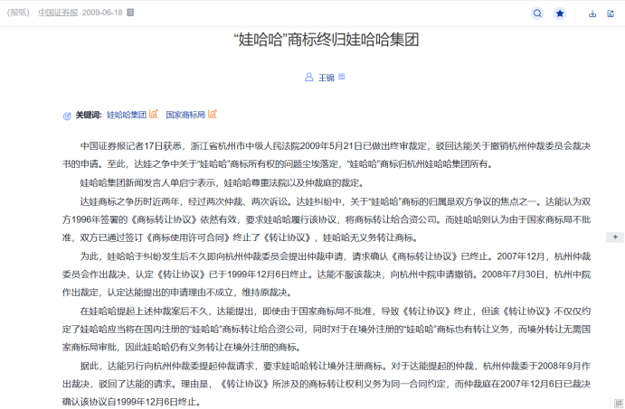 顯然,作為杭州娃哈哈集團的國資控股方,對於此次商標轉讓事件大概率也是不知情的。