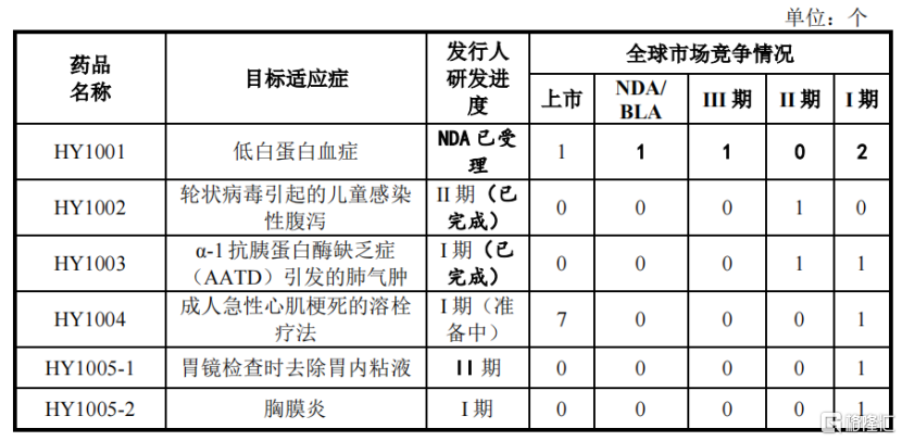 2024年9月,公司已向CDE提交HY1001用於“低白蛋白血癥”適應症的新藥上市申請(NDA),並被納入優先審評審批程序,預計2025年獲批上市。
