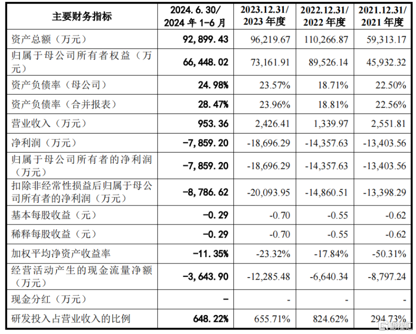 2021年、2022年、2023年及2024年1-6月,禾元生物分別實現收入2551.81萬元、1339.97萬元、2426.41萬元、953.36萬元,同期淨虧損分別為1.34億元、1.44億元、1.87億元、0.79億元。