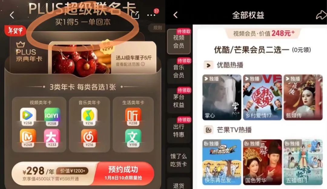 京東PLUS、淘寶88VIP與長視頻的聯合會員合作