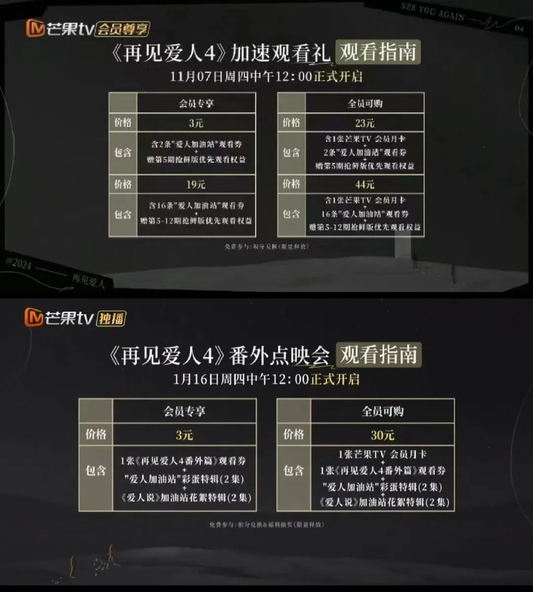 從SVIP權益優先,到加速觀看禮、“回門宴”番外點映會,再到“再見愛人”同款燻雞青團瞄準內容電商,以及《愛人説》配套節目登場,《再見愛人4》着實體現出一個爆款綜藝價值最大化的全鏈路打法該是如何,24億播放量背後,芒果TV獲得1.3億會員創收,以上創新升級的模式必然會在2025年綜藝戰場上被進一步運營。