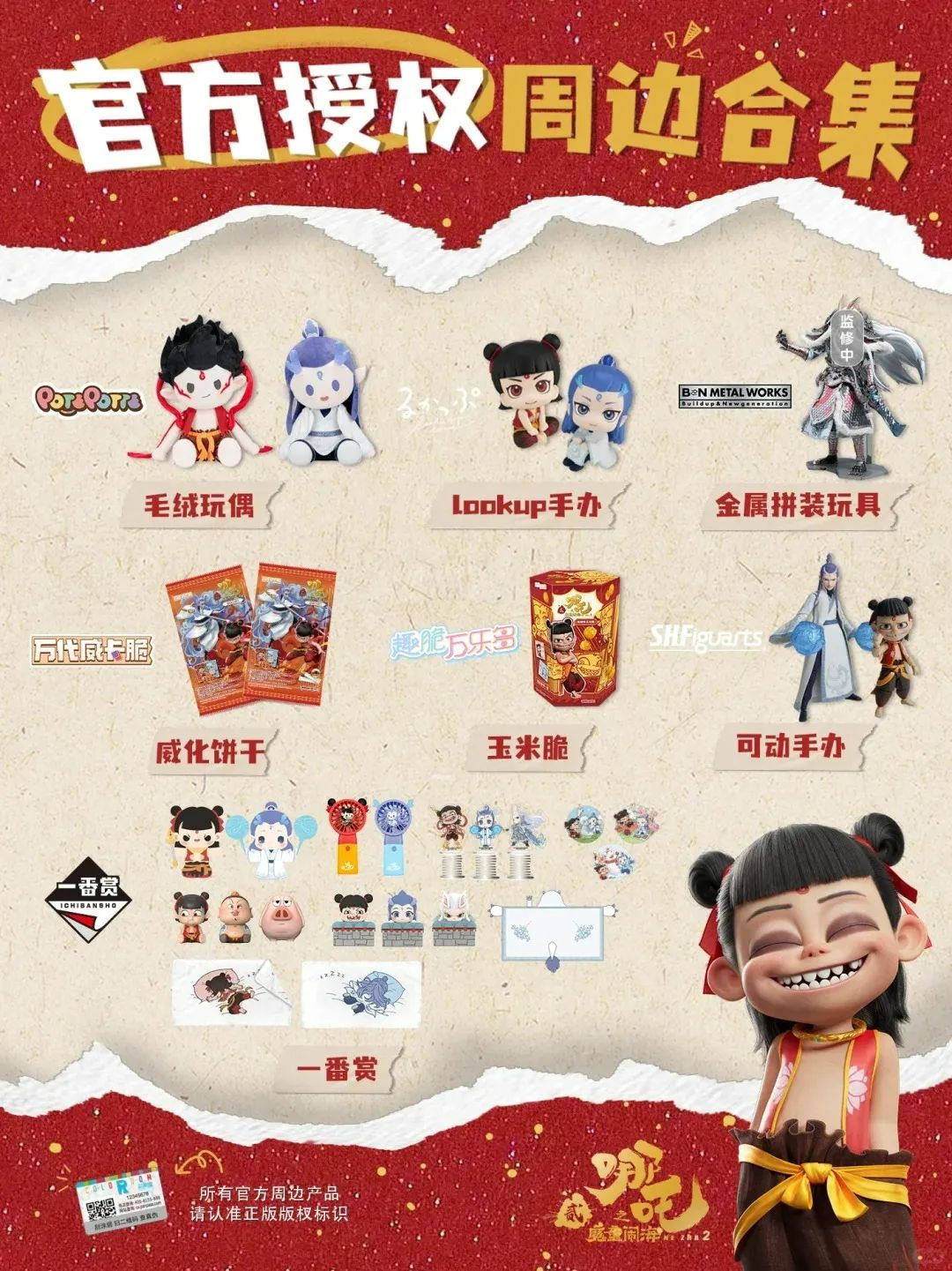 相較之下,作為動畫電影的《哪吒2》擁有可塑性更強的動畫角色形象、前作積累的知名度、覆蓋羣體廣泛的閤家歡內容等種種先天條件,即使它的票房沒有像如今這樣大爆特爆,在衍生開發方面仍然有極大優勢。