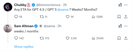 Altman表示,OpenAI很快發佈GPT-4.5,就是傳説中的獵户座模型(Orion),也是最後一個非思維鏈模型。