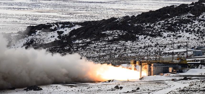 2023年3月2日,美國空軍核武器中心在猶他州普洛蒙托里的諾斯羅普·格魯曼公司測試設施,成功進行了LGM-35A“哨兵”洲際彈道導彈一級固體火箭發動機的首次全規模靜態點火測試。圖片由美國空軍R. Nial Bradshaw提供。