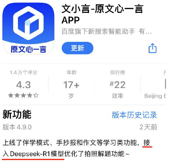 **文小言接入了!**你用文小言拍照解個題也算是deepseek的深度用户