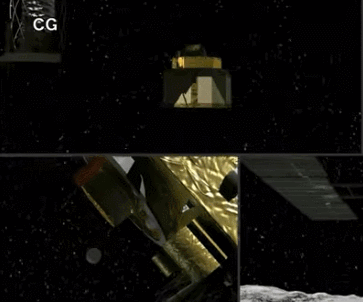 ▲隼鳥2號向龍宮小行星發射金屬彈的CG畫面