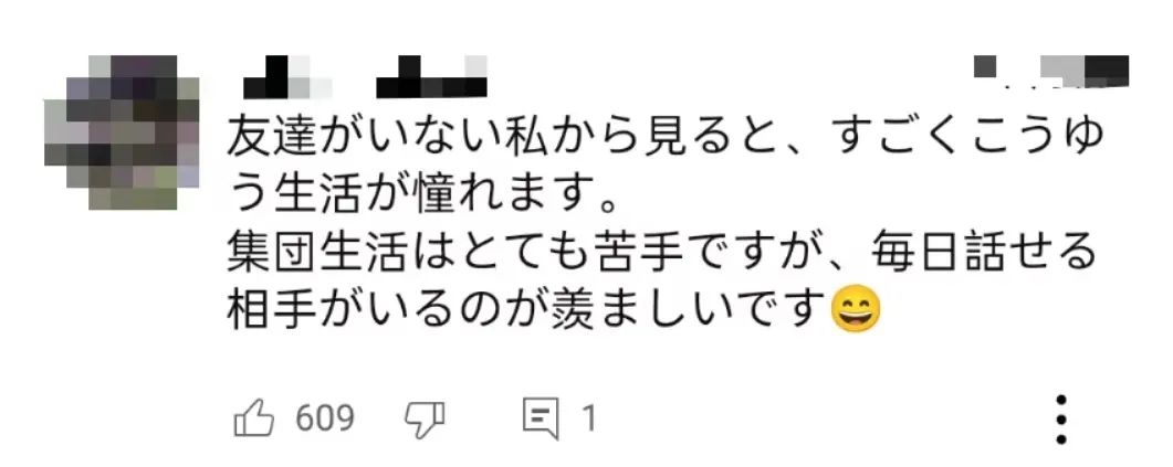 從我沒有朋友的角度來看,我非常向往這樣的生活。雖然我很不擅長集體生活,但我很羨慕每天都有可以説話的對象。😄