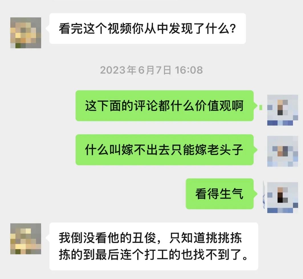 一進家門,姨奶奶直截了當地問我:“覺得這人怎麼樣?要不要談談啊?”我不好意思説些沒禮貌的話回懟她,只好委婉表示他不太符合我的預期。這時,我一個姐姐直接替我説道:“太醜了,不行!”