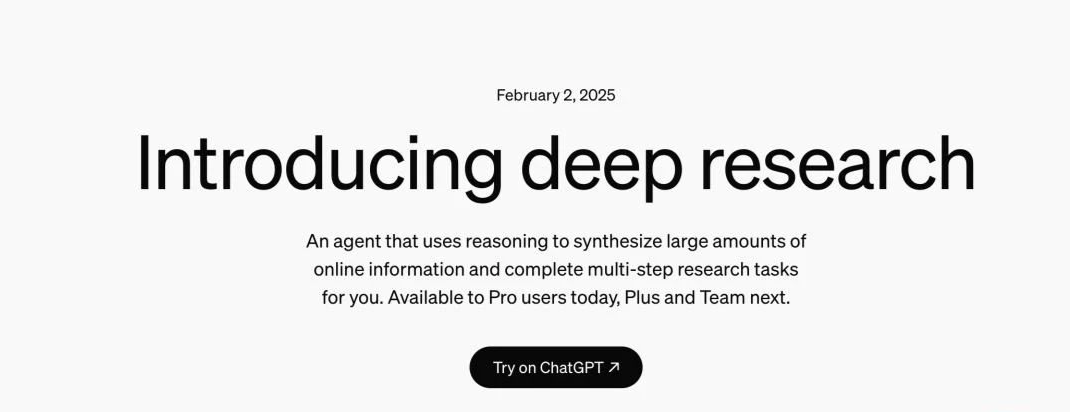 2、推出創新功能:2025年2月3日發佈 “深度研究”(Deep Research)功能,拓展AI的應用場景。