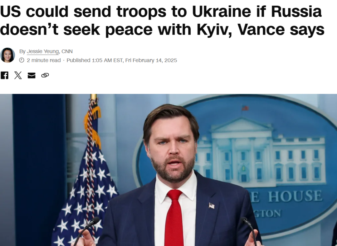萬斯的態度不僅與特朗普不同,與國防部長赫格塞斯本週三在布魯塞爾的態度也截然不同,赫格塞斯説,“美國軍隊不會作為和平保障的一部分去部署到烏克蘭”。