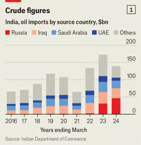 圖表1:印度的石油進口情況。圖源:《經濟學人》