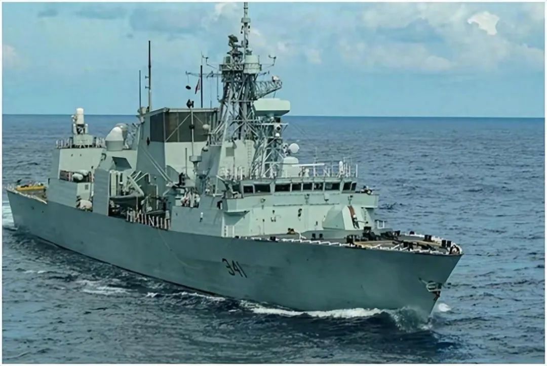加拿大海軍的“渥太華”號護衞艦屬於“哈利法克斯級”導彈護衞艦,該級共建造12艘,“渥太華”號是最後一艘,是上世紀90年代建造的老古董,該艦排水量5300噸,配備57毫米主炮,海麻雀艦空導彈和魚叉反艦導彈。採用了CODOG型柴燃聯合動力,最大航速勉強能夠到29節。