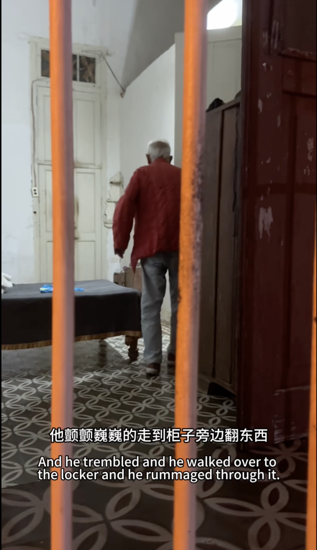 官方鏡頭之外,亦有博主去探望了老人的生活。