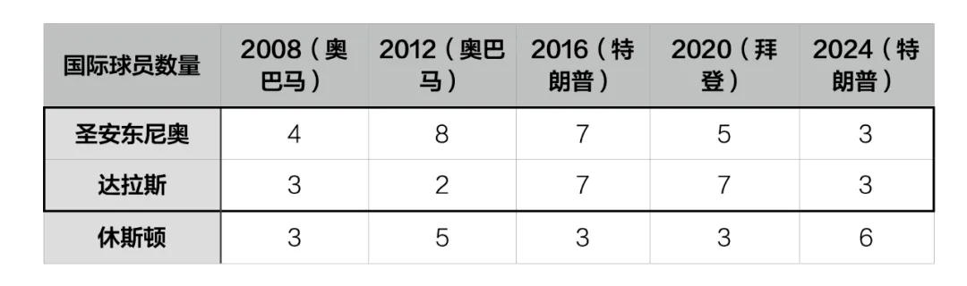 這個週期裏“越來越右”的球隊反而有些出乎意料,此前很長一段時間裏被稱作“國際縱隊”的達拉斯獨行俠和聖安東尼奧馬刺,這兩支球隊在思想傾向相對保守的得克薩斯州,好像開始沒有了“國際縱隊”的樣子?