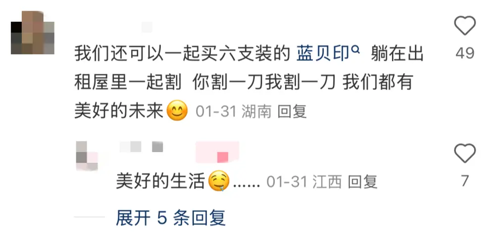 她們越是期盼被關注,互聯網上就越有人陰陽怪氣,不懷好意地嘲諷她們:地雷妹去便利店掃碼可以直接掃胳膊;地雷妹改花刀流出的血是中國紅;説好了一起逃離原生家庭,結果你的零花錢就有20萬;説好了一起去中味,結果發現原來你也得過年。