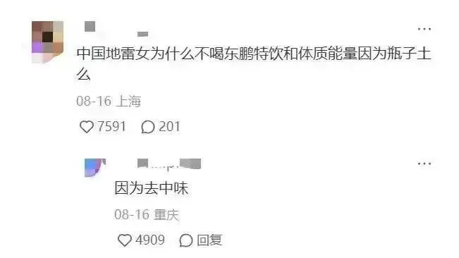 也許有人會好奇了,這些中華區地雷妹為啥不去喝東鵬特飲?價格更便宜。