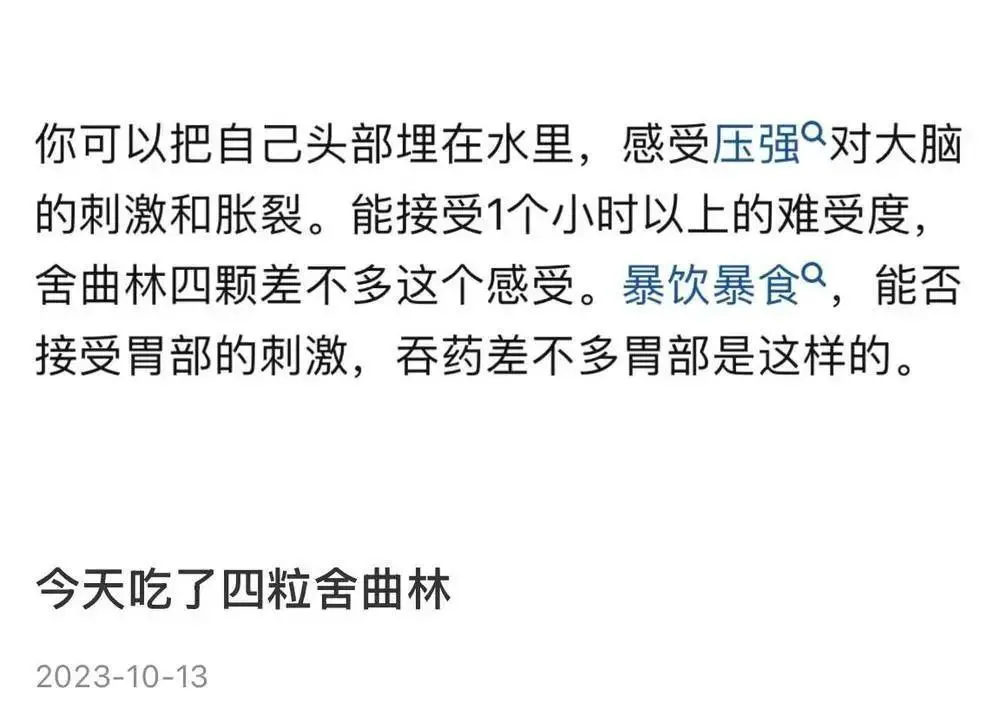 舍曲林、喹硫平、碳酸鋰、卡馬西平她們如數家珍,互相交流今天又od了多少片藥,動輒吞掉了幾十片舍曲林,讓那些正在治療的患者聽了都感到匪夷所思。事實上,精神類藥物必須在醫生指導下服用,藥量控制得非常嚴謹細微。服藥過程中有一系列不良反應,包括體重增加、嗜睡或失眠、噁心頭痛等等。